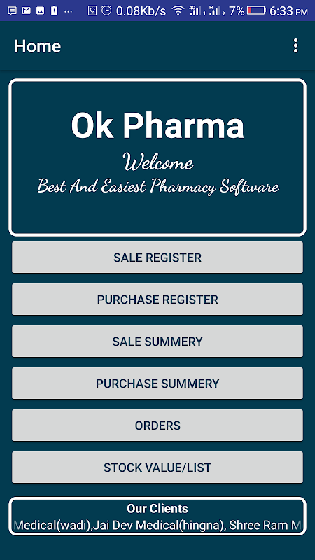 Microsys OkPharma App is developed to help Owner to control pharmacy day today activity live, like Place Order, Sale , Purchase , Stock List, OutStanding etc.