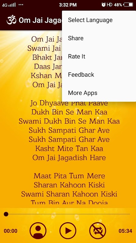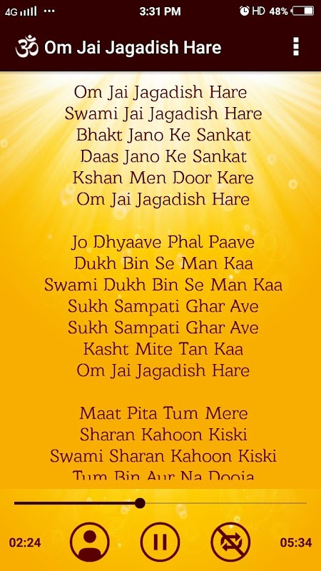 - No internet requirement to listen Om Jai Jagdish Hare.