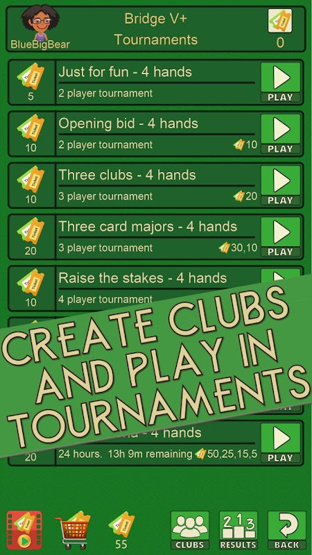 * 自分だけのブリッジクラブを作成し、友人や家族とプレイ。