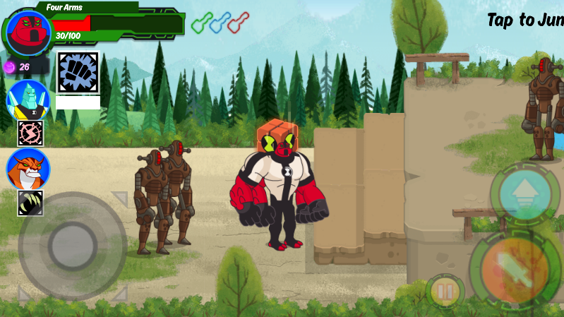 For the more exciting part, namely, the attacking, you will mostly use the attack button. You can also use the special button to launch a special attack. Each one is unique to the alien you are transformed into. However, try not to abuse the last one because it requires quite a long time to recharge. If you use it recklessly, you will regret it at some point!