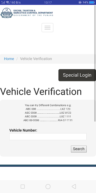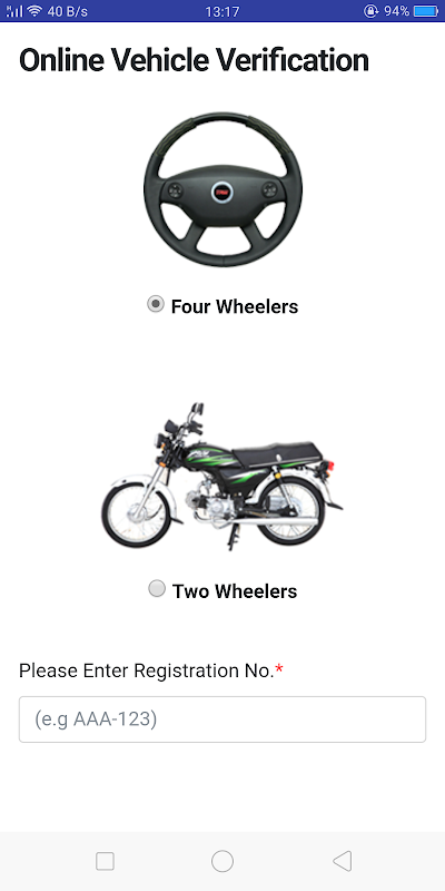 This App contains five Regions / Provinces Online Vehicle Verification process i.e Khyber Pakhtunkhwa (KPK), Sindh, Punjab, Gilgit and Islamabad. Balochistan is not available yet but will be added as soon as possible.