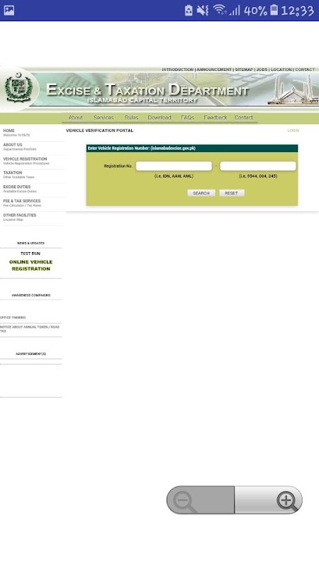 This app Will Give you Information of Vehicles such as Car, Motorcycle (bike) etc. for the following places. And data is extracted from Excise & Taxation Motor Registration Wing and MTMIS from the Government of KPK, Sindh, Punjab, Gilgit and Islamabad.