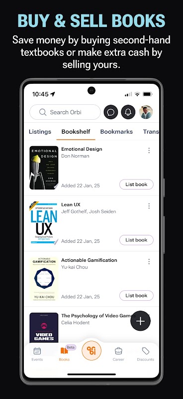 学生生活を記録するストレスから解放されます - Orbi はすべてを 1 か所に集めます!割引を見つけたり、コースブックを売買したり、キャリアの機会を探したり、最高のイベントのチケットを予約したりできます。