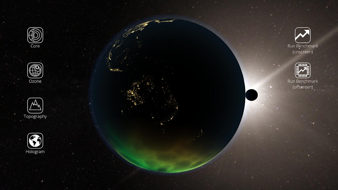 While on-screen Benchmark Mode is limited to the native resolution of your device, with off-screen Benchmark Mode you can measure performance rendering at 4K resolution ! This makes it easier to compare devices for performance in the same conditions, and shows how your device would perform if it were to output to a 4k TV for example.