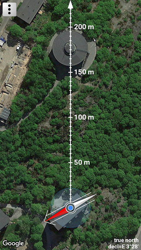*クリックすると地図をコンパスにロックするボタンがあり、電話を回しても地図が風景の方向を維持します。