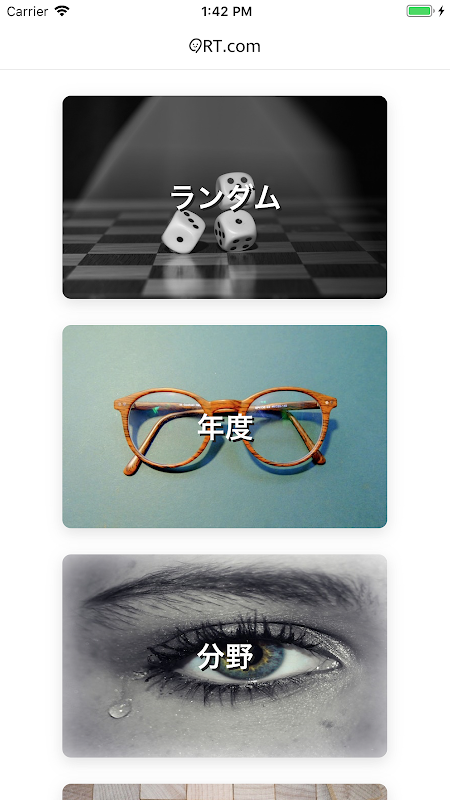 年度別、分野別、ランダム出題から問題を選ぶことができます。