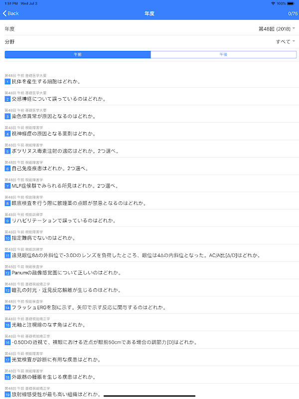 第43回から第50回までの視能訓練士国家試験過去問を解くことができます。