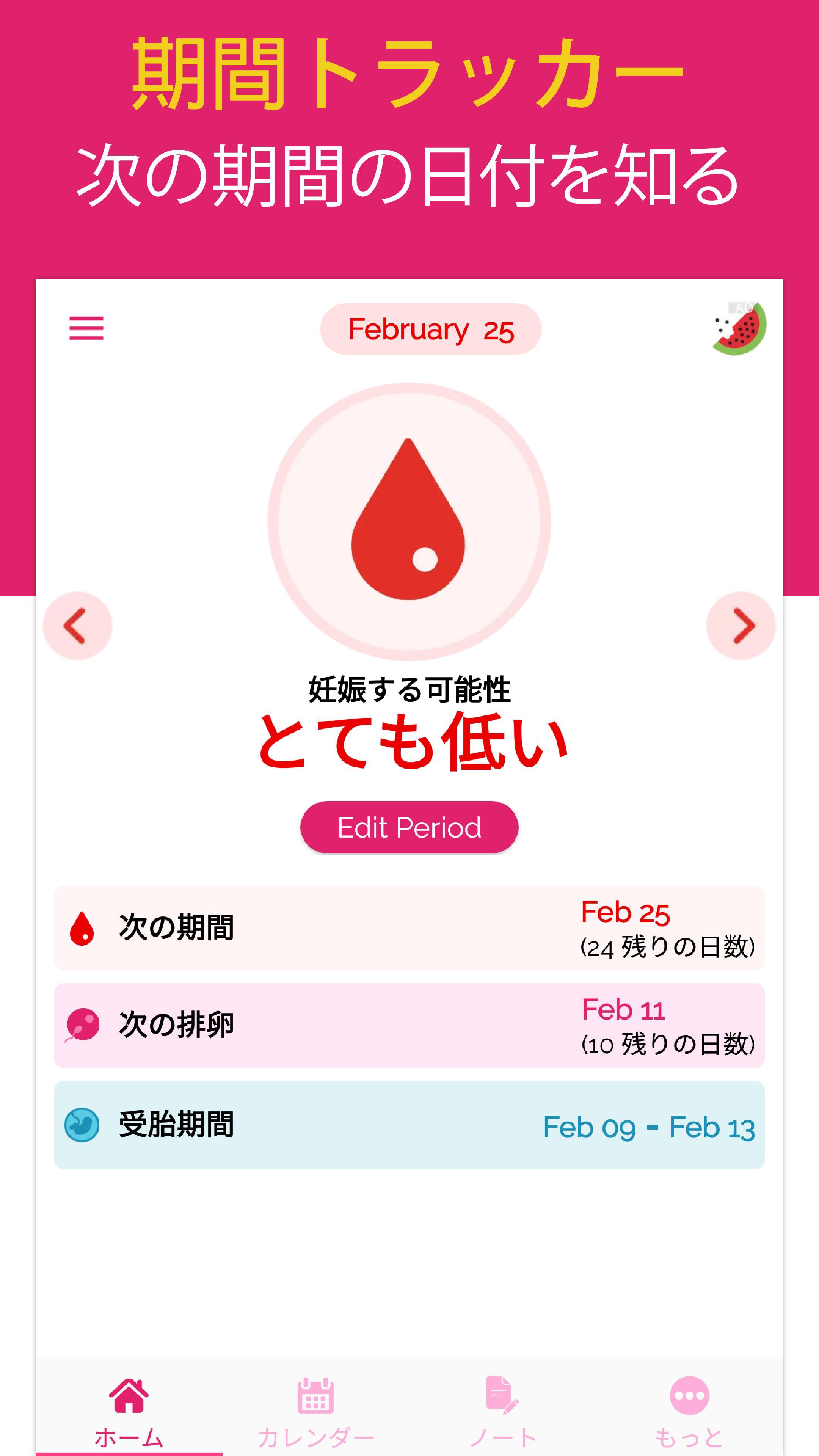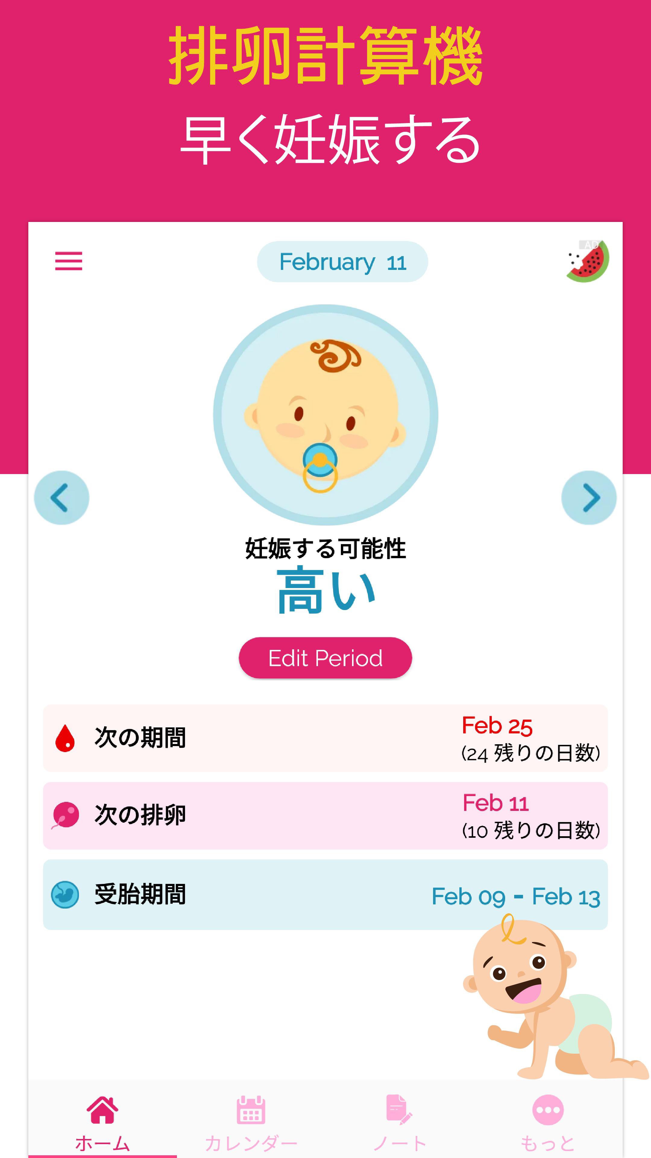 ★直後に、この期間計算機が次の期間の日付、次の排卵日、およびあなたの妊娠可能期間についても表示するので、妊娠する可能性について知るようになります