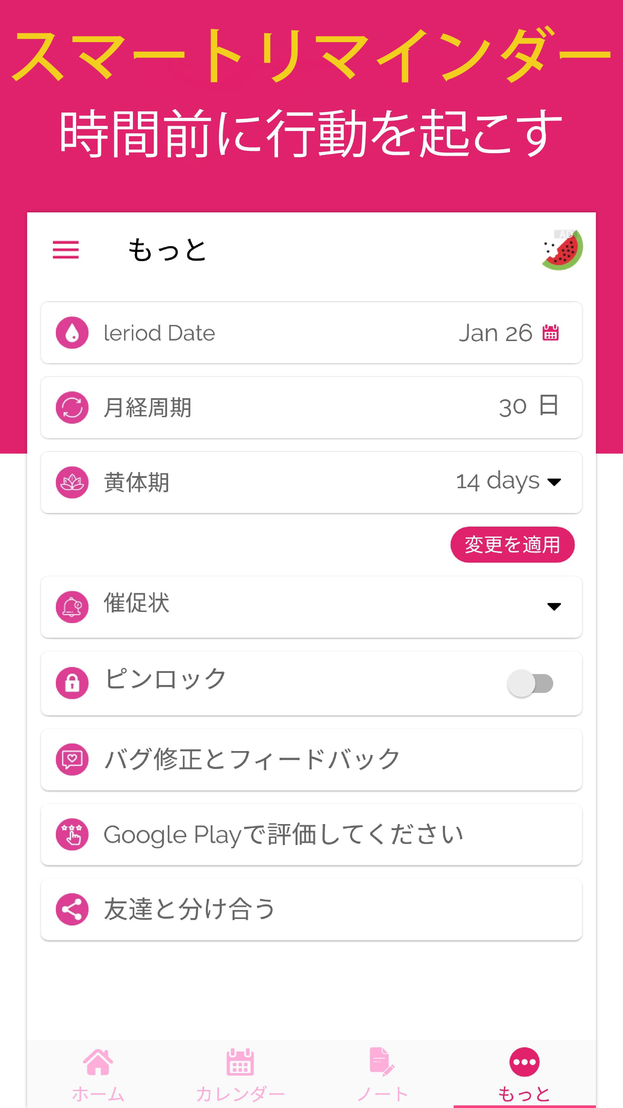 ★変更があった場合、この期間アプリを使用すると、期間の日付、月経周期、黄体期をカスタマイズできます。