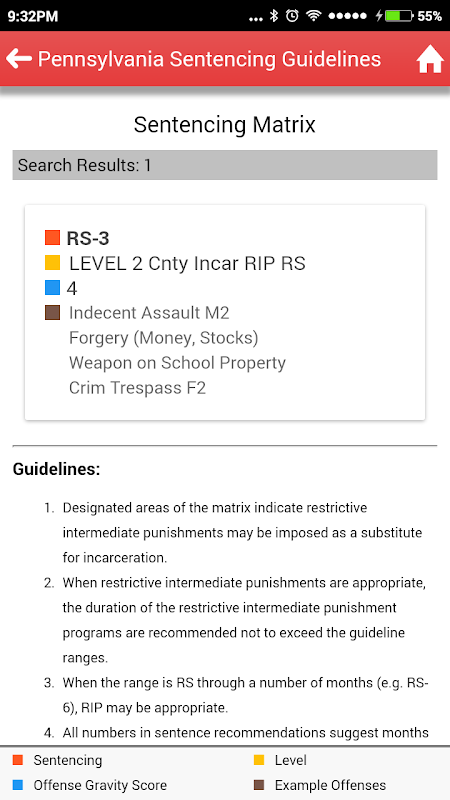 Pennsylvania Sentencing Guidelines app provides laws and codes in the palm of your hands. Very efficient, fast and easy to use software designed for law enforcement personnel, lawyers, paralegals, students, government officials or anyone who needs quick access.