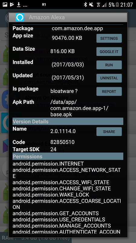 3.アプリケーションのバージョン、バージョンコード、使用されたターゲットSDKの詳細情報