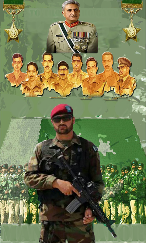 People of Pakistan love and support Pakistan army, as pak army is considered to be the bravest army in the world. If you want to support pak army then create banner for pak army and add army slogans and other text with your own choice. Army poster maker contains the ultimate military frames for banner making. Get the SSG commando and pak army frames and add pak army flag along with your photo from gallery to create the best Pakistan army flex. Design pak army poster,add pak army slogans and text on flex and get the best poster for army. Pak army flex maker 2018 is facile to use, select military frames and add your photo and text on pak army banner.