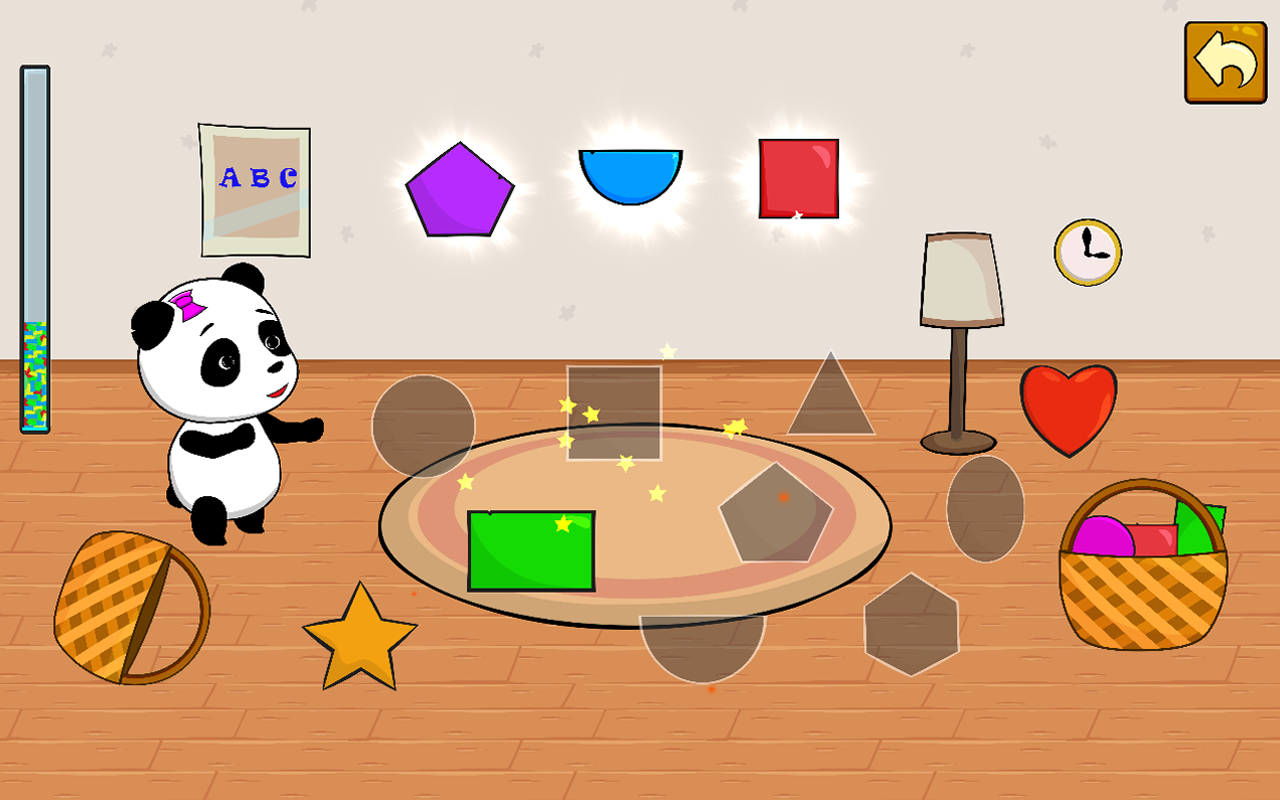 道中ずっと、楽しくてフレンドリーなパンダがいて、正しい答えが提供されると、プレイヤーに幸せなダンスで報酬を与えます。すべてのシーンは、インタラクティブな環境、楽しい音楽、効果音でユニークです。このアプリには以下が含まれています。
