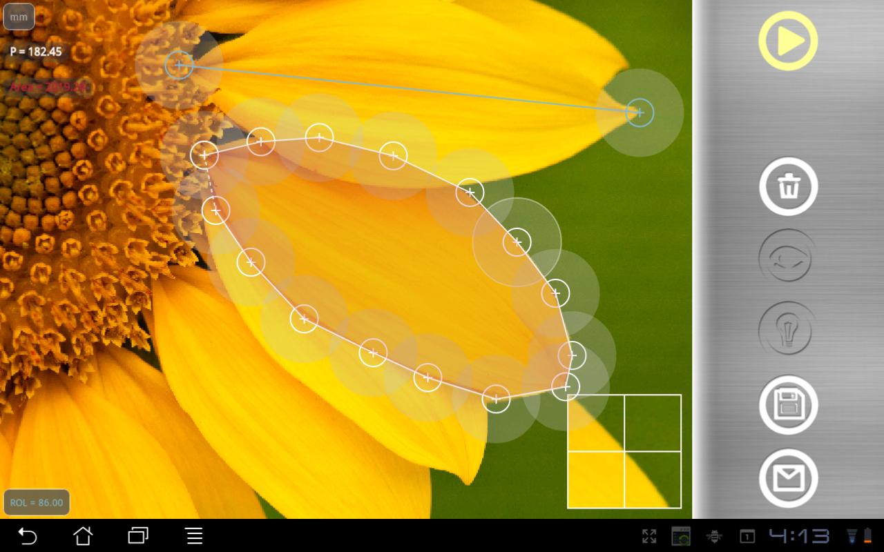 サイズ、面積、距離、比、写真上の角度測定用のカメラ対策ツール
