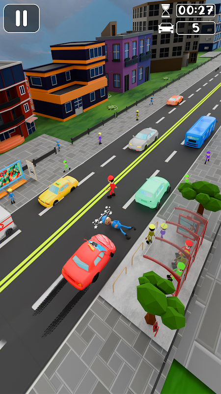 この Passenger Rush ゲームでは、さまざまな色の車が道路を連続して走行し、反対側では、色の乗客がバス停に到着します。その時点で、ユーザーは乗客と同じ色の車またはバスをタップします。ユーザーは車両に注意します。一致する色の車が最初の列に来たら、1 回タップします。一致する色の車が 2 番目の列に来たら、2 回タップして色の車に合わせます。