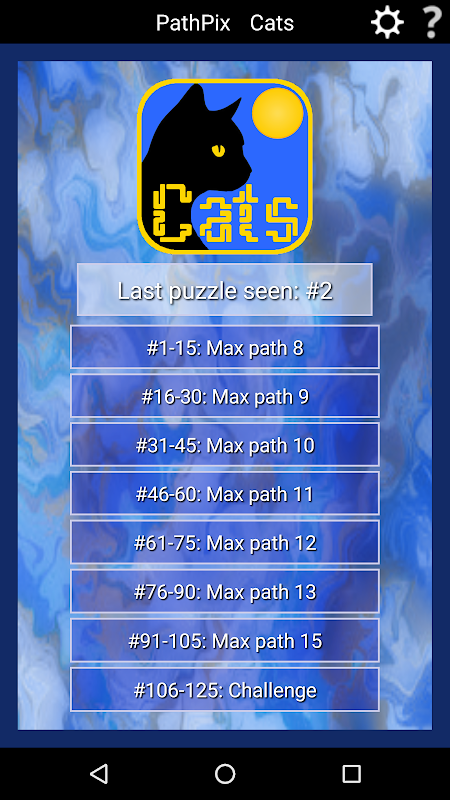 もっとPathPixのパズルをお探しですか?猫はお好きですか?ゴロゴロ鳴いて遊びましょう!125個の巨大パズルで、古代から現代まで愛されてきたこの素敵なペットたちを堪能できます。パズルを解いて、ここに展示されている素晴らしい猫たちの冒険を体験してください。100万マスを超えるPathPixパズルには、簡単、中級、難しいエリアが用意されています。パズルはどれも巨大で、平均サイズは10,000マス(100×100)以上です。それぞれのパズルは巨大なキャンバス。パズルを解き明かして、完成した絵を描きましょう。