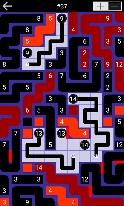 明るく太い色の線を描いて、色付きの数字のペアを結ぶパスを作ります。各パスの長さは、接続する数と同じにする必要があります。