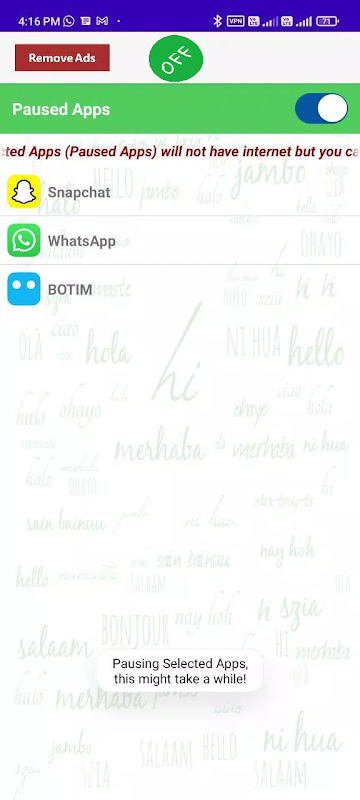 「一時停止」を使用すると、あまりにも邪魔なアプリが少ないと感じたときはいつでも、迷惑なアプリをオフにすることができ、Wi-Fi/モバイル データをオフにする必要さえありません。