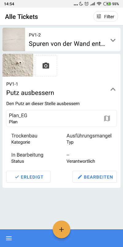• Mängel und Aufgaben nach Gewerken, Erstellungsdatum und mehr filtern