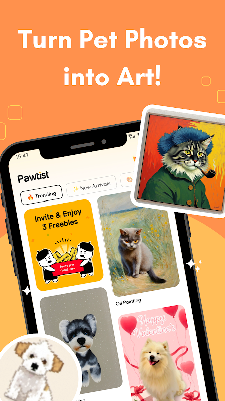 Pawtistをダウンロードして、ペットをAIアクションフィギュアに変身させ、旅のシーンで世界を旅するスーパースターに変身させましょう!