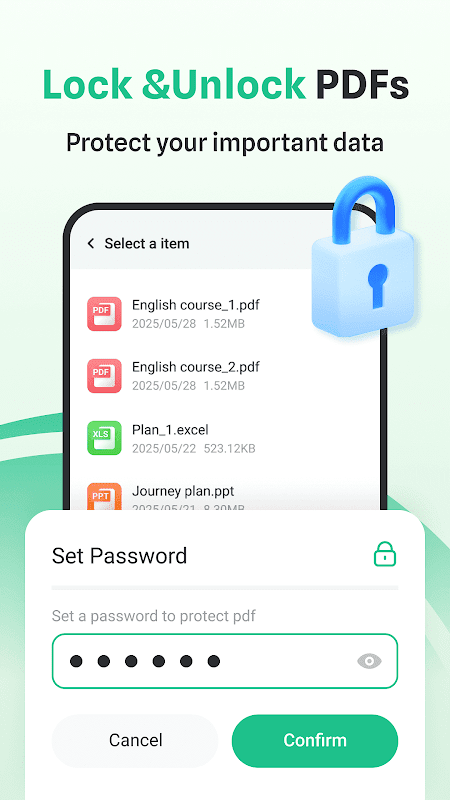 スマートフォンでPDFファイルを簡単に閲覧 - Word (.doc/.docx)、Excel (.xls/.xlsx)、PPT (.ppt/.pptx) を同時に開くことができます