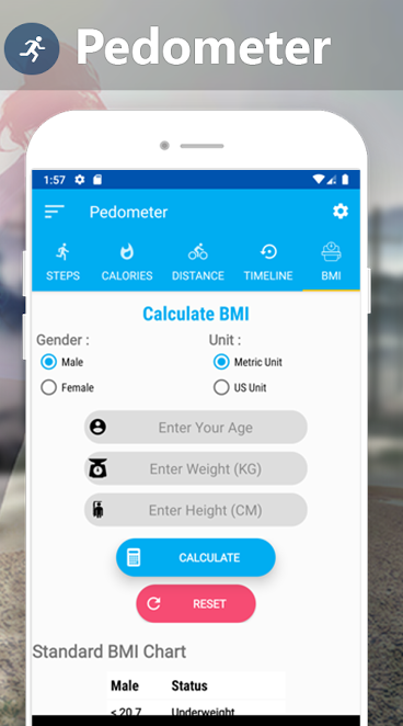 5. Standard BMI charts for both(Male/Female) are also added for health and fitness
