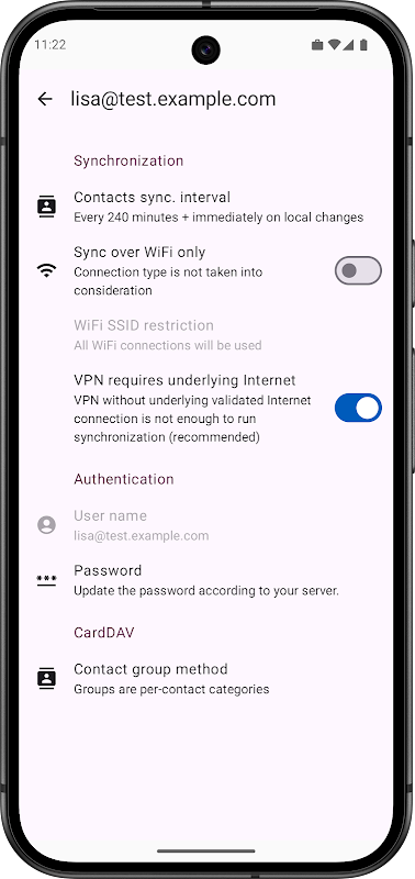 このアプリは、ビジネスでの使用と IT スタッフによる集中管理を目的として開発されました。一般的な使用シナリオでは、特定のユーザーが同期するアドレスリストはサーバー側でプロビジョニングされます。アプリは常にサーバー上のすべてのアドレスリストを同期します。