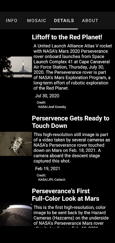 アプリは、Perseverance Mars Rover からの画像と情報を表示します