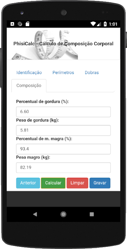 PhisiCalcは、体育専門家やフィットネスセンターが学生の身体的評価を支援するために開発され、個々の運動プログラムの精緻化を促進するために体組成の計算を実行します。
