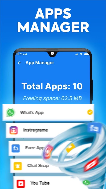 アプリ マネージャーは、デバイスにインストールされているすべてのアプリをスキャンして一覧表示します。 ユーザーは、インストールされているすべてのアプリのリストと、それらが電話で占有しているスペースを表示できます。 ユーザーは、電話クリーナー アプリを使用してアプリを簡単に表示および管理できます。