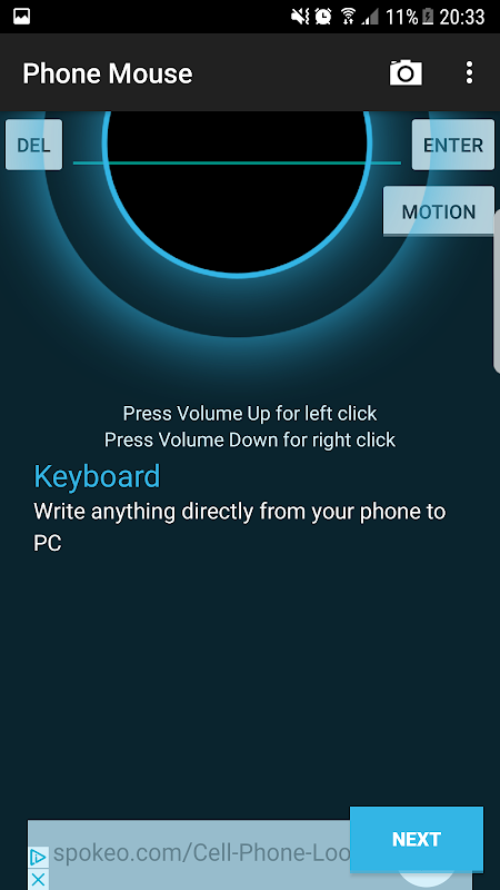 Sitting comfortably on sofa? Or giving a presentation? Now control your PC by simply moving your phone around in-air or by using the phone's touch screen as a touch-pad.
