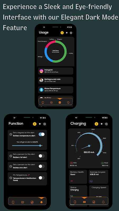 🔄🔋 最適化された充電: アプリは、携帯電話の温度に基づいて最適化された充電の提案を提供し、バッテリーの健全性と効率性を確保します。