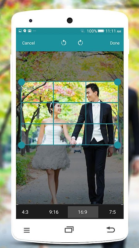 #指を使用してズーム/移動し、写真のトリミング領域を回転させます。