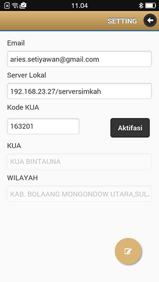 Aplikasi ini berjalan dengan sempurna apabila terdapat jaringan wifi dan server simkah di kantor urusan agama. SIMKAH sebagai aplikasi core (utama) yang berjalan di desktop harus di setting/di tambahkan konfigurasi untuk untuk dijadikan sebagai webbase, dengan jalan cara menambahkan aplikasi webserver dengan konfigurasi sesuai dengan database yang ada.