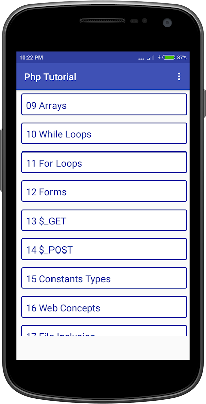 PHP Tutorial app collections of Categories are below and provide all this Topic
