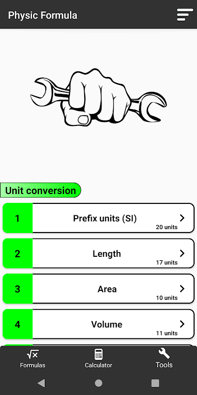 プロの電卓を持つことも計算のアプリケーションであり、その数式のセクションでは、初心者から上級者までの物理数式を完全にカバーしようとします。