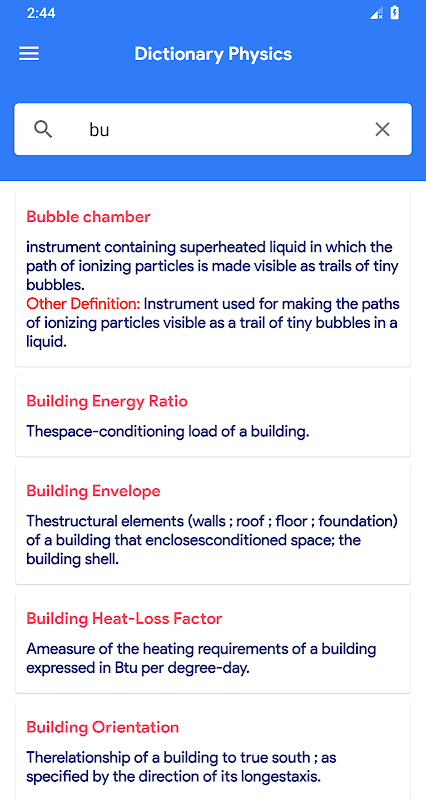 物理学辞典のオフラインは、すべての一般的に遭遇する物理学の用語や概念だけでなく、用語をカバーする3,000以上の物理学の用語]を含んでいます。ベストアプリは、このアプリケーションは、物理学の学生のための理想的である、あなたの定義を検索します。このアプリは含まれています:重力 - 弾力性 - 天文学 - 回転運動 - 振動運動 - 波 - フォースなどを。アプリケーションは、インターネット接続を必要としません。