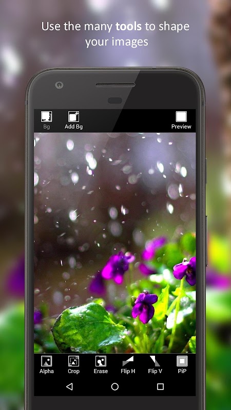 このアプリには、回転(2本指ジェスチャーによる回転を含む)、傾き、拡大・縮小(2本指による拡大・縮小を含む)、切り抜き(フリーハンドと長方形)など、前景画像を微調整できる画像加工ツールが多数搭載されています。このフォトエディターを使えば、画像の一部をカット&ペーストして別の画像に貼り付けることができます。合成後の画像は、保存前にプレビューでき、デバイスに搭載されている共有アプリで共有することも可能です。画像ぼかしエディターや、写真と画像のリサイズ機能も搭載しています。