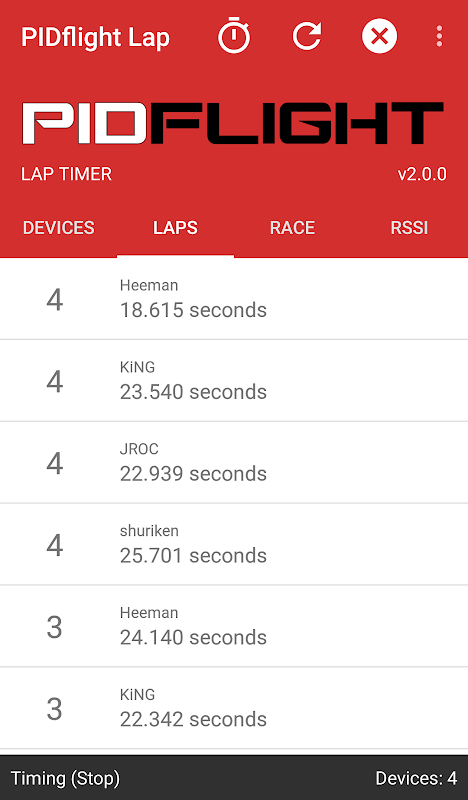 PIDflightラップはPIDflightラップタイミングデバイス(VTX)と互換性のあるハードウェアのためのコンパニオンアプリです。