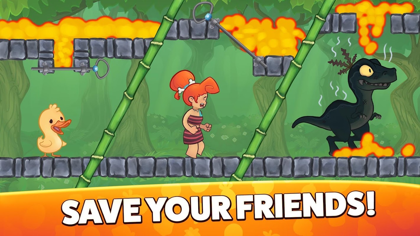 ピンを引いてパーラとアヒルを救出し、空腹の🦖恐竜の青を止めて、果物🍑🍎🍍🍊を手に入れましょう。