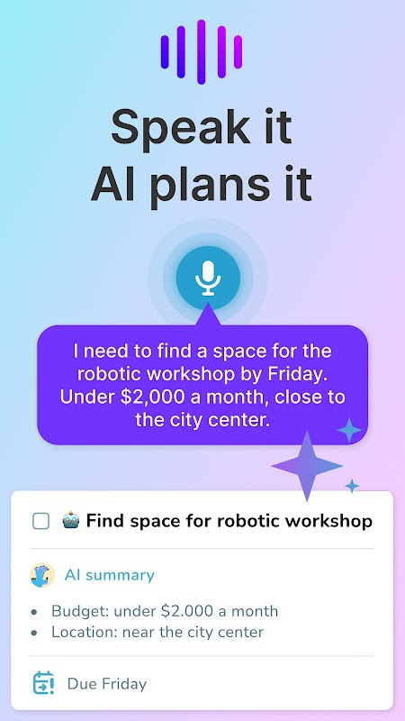 • 音声テキスト変換:簡単な音声メモを瞬時にタスクに変換します。