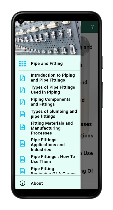 パイプ継手は、エルボ、ティーなど、流れの方向を変えるのに役立つ配管コンポーネントです。パイプフィッターは、水、燃料、化学物質、またはガスの輸送に使用できるパイプシステムの組み立て、設置、保守、修理を行う必要があります。パイプフィッターは、水処理プラント、工場、その他の産業施設のシステムに取り組む場合があります。パイプ継手の基礎を学ぶ最良の方法です。このアプリケーションでは、パイプ継手の基本を学びます。配管および付属品の寸法。アプリには、パイプサイズ、パイプクランプ、フィッティング、フランジ、パイプハンガー、ガスケットなどの多くのアクセサリがあります。