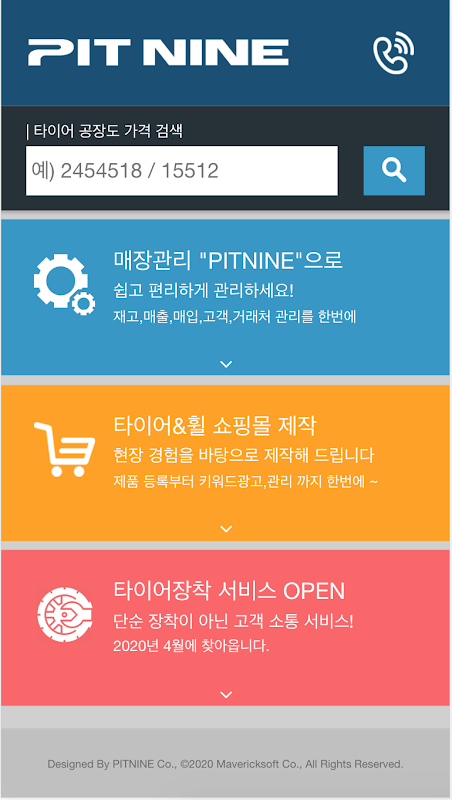 'PITNINE 공가검색'은 타이어 판매점 관리프로그램인 'PITNINE(피트나인)'의 타이어 공장도가 데이타베이스를 검색 할 수 있는 애플리케이션으로, 유료 PC용 프로그램인 'PITNINE(피트나인)'의 이용 여부와 관계 없이, 누구나 무료로 사용하실 수 있습니다.