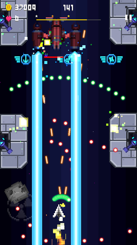 敵が潜むピクセルの世界を通過している宇宙船をコントロール。様々なアビリティや弱点を持つ8つのボスと戦う。エキサイティングなミッション、強力な敵、そして熾烈なボス戦の準備をしてください!