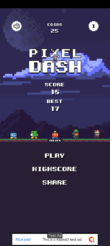 Welcome to PixelDodge, a thrilling pixelated game where you can unlock numerous new characters using coins. The game has a old school style landscape gameplay where you tap the screen to time moving across the platform.