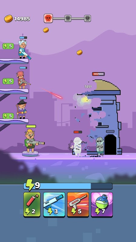 エピックヘルパー:氷、レーザー、化学ポーションを投げるヘルパーのロックを解除します。それぞれが敵を粉砕するためのユニークな能力を持っています!
