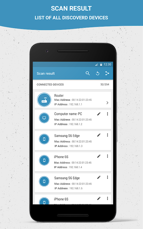 * IPアドレスに、 MACアドレスを含む全デバイスの詳細に、デバイス名に、デバイスメーカーを、そしてより多くの。