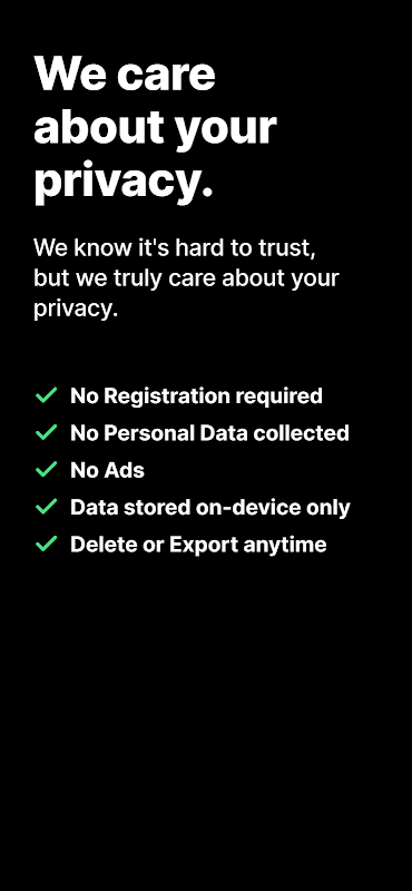 - プライバシー: データはデバイスにのみ保存されるため、データにアクセスできるのはあなただけです。