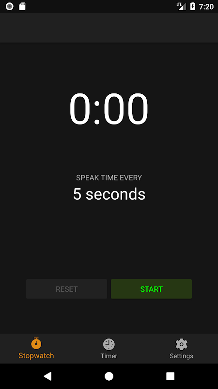 ストップウォッチ:アプリが指定した間隔で経過時間を話します。例:「5秒」、「10秒」... 1分30秒」等が停止するまで。