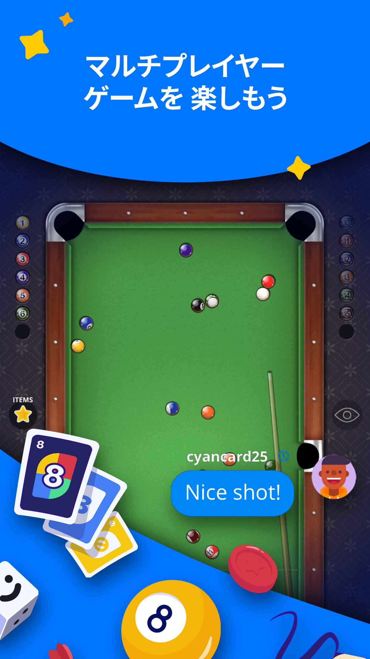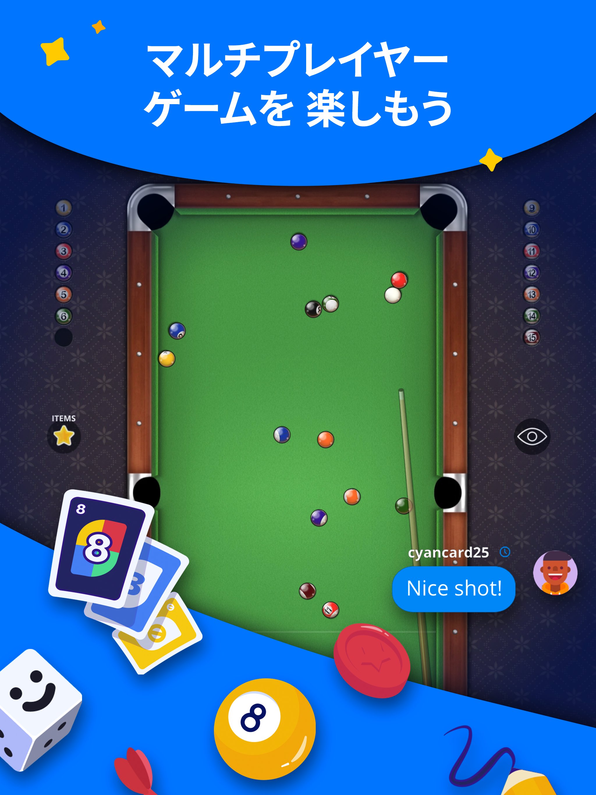 チャットが楽しめるゲームを友達とプレイ!ビリヤード、ミニゴルフ、カロムなどを楽しもう。
